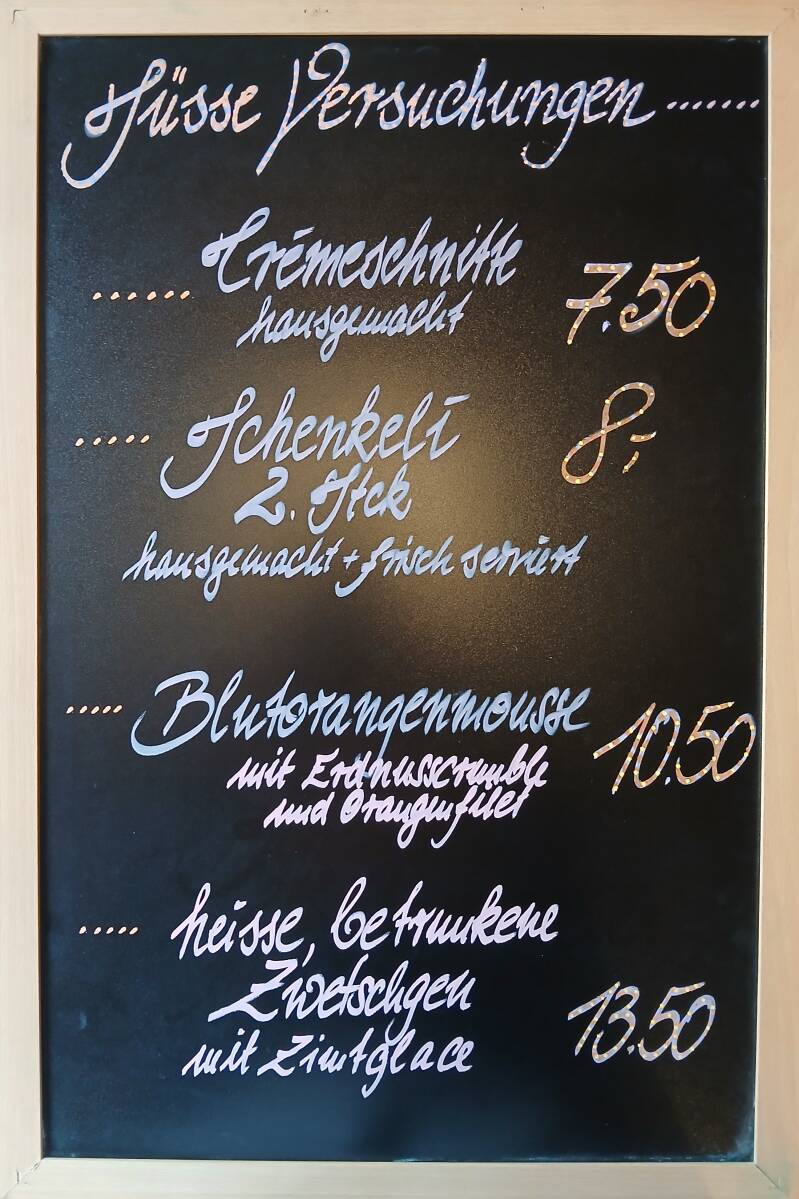 Beilagen: Butternüdeli, Kartoffelgratin oder Pommes frites